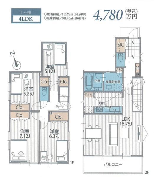 113.28㎡(34.26坪)物件名称 | 西野川1丁目Ⅴ 1号棟 |