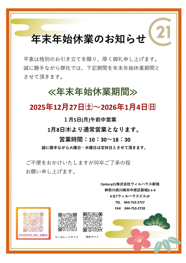 2025年12月27日㈯~2026年1月4日㈰